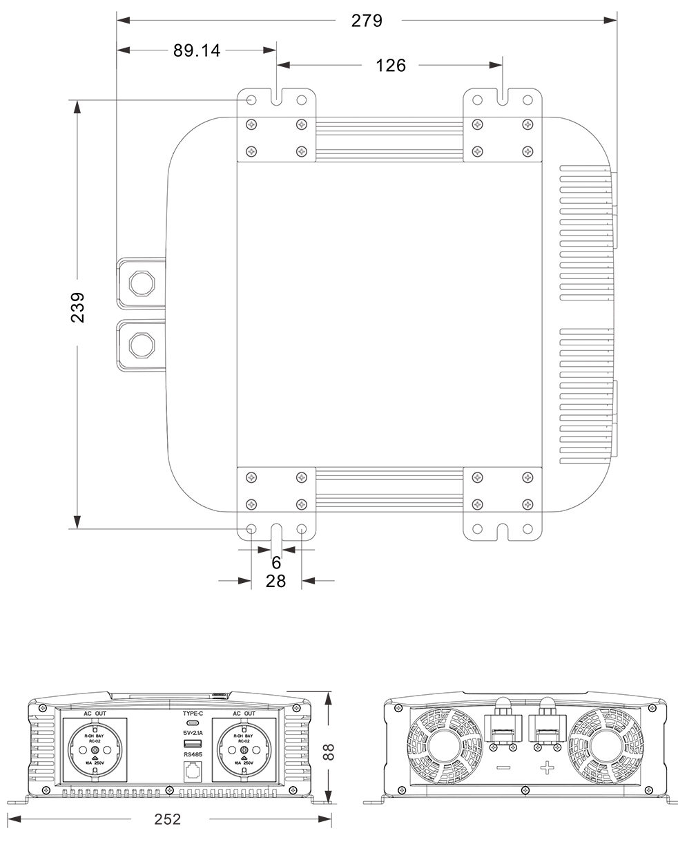 Механикалық сызбалар: (279x252x88mm)
