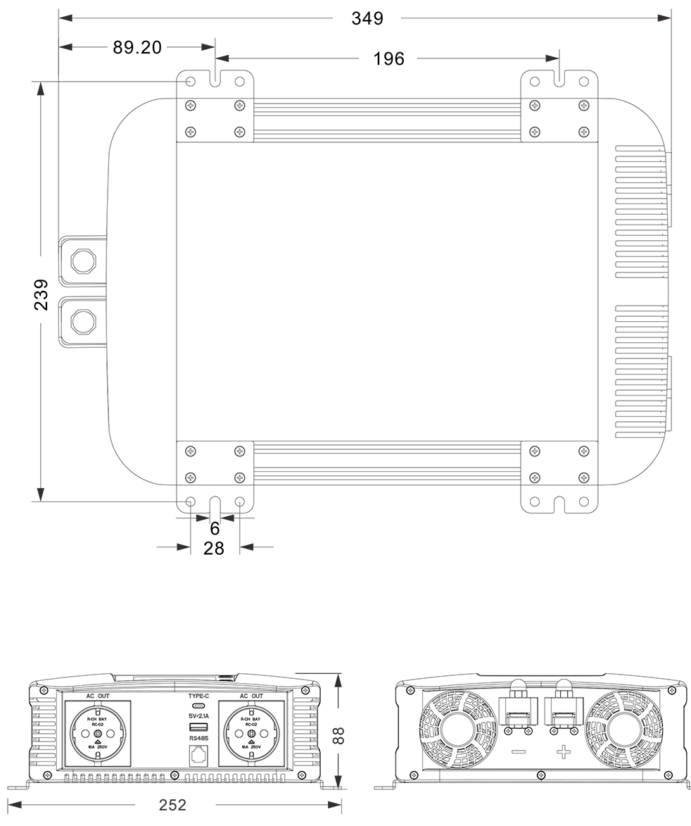 Механикалық сызбалар: (349x252x88mm)