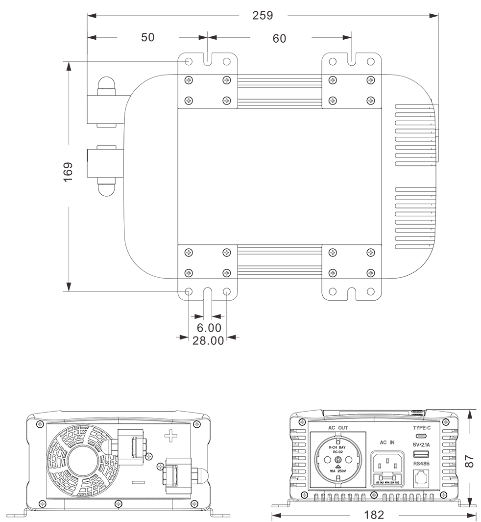 Басқалары Өлшемі (W × h × d) 259 × 182 × 87 мм